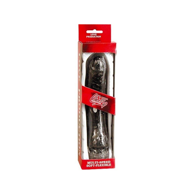 Vibratore nero , potente , morbido flessibile . Un fallo vibrante realistico per la stimolazione vaginale . Pleasures vibratore di 22 cm . Velocità regolabile