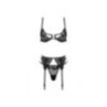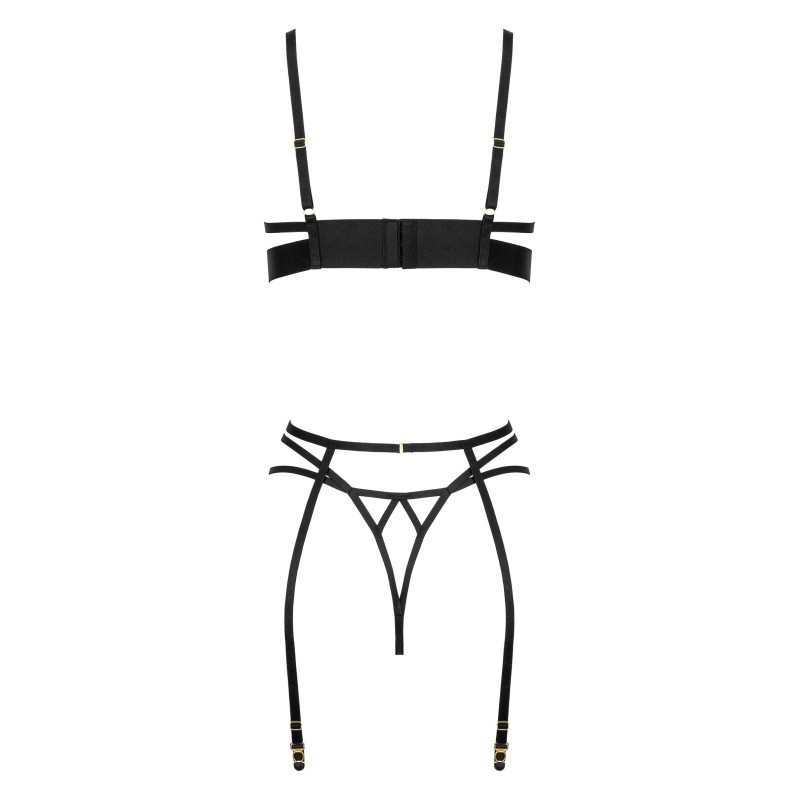 Questo affascinante e seducente set combina il meglio del design classico e moderno, emanando un look incredibilmente lussuoso. Realizzato in pizzo di alta qualità e in elegante raso, il set emana eleganza e raffinatezza. Il reggiseno si chiude sulla schiena con un gancetto che garantisce stabilità e comfort. Le spalline regolabili assicurano una vestibilità perfetta e il massimo comfort. I ferretti sollevano il seno e accentuano il décolleté in modo lusinghiero. Il pizzo è progettato per offrire scorci sottili pur garantendo un ottimo sostegno. Il reggicalze regolabile allegato consente di fissare le calze come si desidera. Il perizoma coordinato completa perfettamente il set. Si prega di notare che le calze non sono incluse