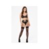Questo splendido set di lingerie a 3 pezzi mette in risalto sensualità e femminilità, realizzato in un tessuto simile al lattice. Il reggiseno con ferretto offre un sostegno eccellente, accentuando la bellezza naturale del seno. Le coppe morbide si adattano perfettamente al corpo, garantendo una vestibilità confortevole. La parte posteriore del reggiseno presenta una chiusura regolabile a 3 ganci e le spalline sono regolabili individualmente. Il set comprende un sensuale reggicalze che sottolinea il punto vita e aggiunge eleganza al look complessivo. Anche le spalline della giarrettiera sono regolabili. Completa il set un elegante perizoma che rivela splendidamente i glutei. Questo set è ideale per le donne che desiderano rafforzare la loro sicurezza e il loro stile unico.