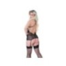 Reggicalze in pizzo e rete e perizoma abbinato - Abito reggicalze in pizzo e rete con spalline con effetto corsetto sul davanti e sulla schiena bassa con spalline incrociate regolabili. Viene fornito insieme a un perizoma in rete abbinato. Il vestito a canotta ha spalline regolabili per reggicalze.