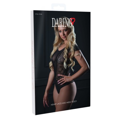 Teddy in pizzo e rete a cuore - Teddy femminile in pizzo a cuore e rete con dettaglio di strass sulla scollatura e sulle maniche ad aletta.