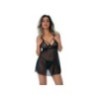 Babydoll in pizzo e perizoma - Babydoll sensuale in rete trasparente, coppe in pizzo con motivo a cuore e spalline per accentuare le tue curve. Ferretto con chiusura e spalline regolabili, cordino abbinato incluso.