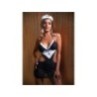 Set da gioco di ruolo da cameriera francese - Mini abito sexy da cameriera francese con scollo all'americana e schiena scoperta, in morbida rete trasparente con dettagli in pizzo effetto grembiule. Copricapo con fiocco in raso incluso.