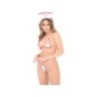 Guarirai sicuramente il cuore del tuo partner in questo set gioco di ruolo infermiera sveltina ultra sexy. Questo seducente insieme di reggiseno e mutandine accenderà i desideri del tuo partner mentre assumi il ruolo di un'infermiera seducente. Realizzato in un tessuto altamente elasticizzato, abbraccia le tue curve per una vestibilità perfetta. Il set include una giocosa fascia da infermiera per completare il look allettante. Lascia che le tue fantasie prendano vita e crei un'indimenticabile notte di passione mentre guarisci non solo il loro corpo ma anche il loro cuore. Preparati a dedicarti all'emozionante mondo del gioco di ruolo dell'infermiera birichina.