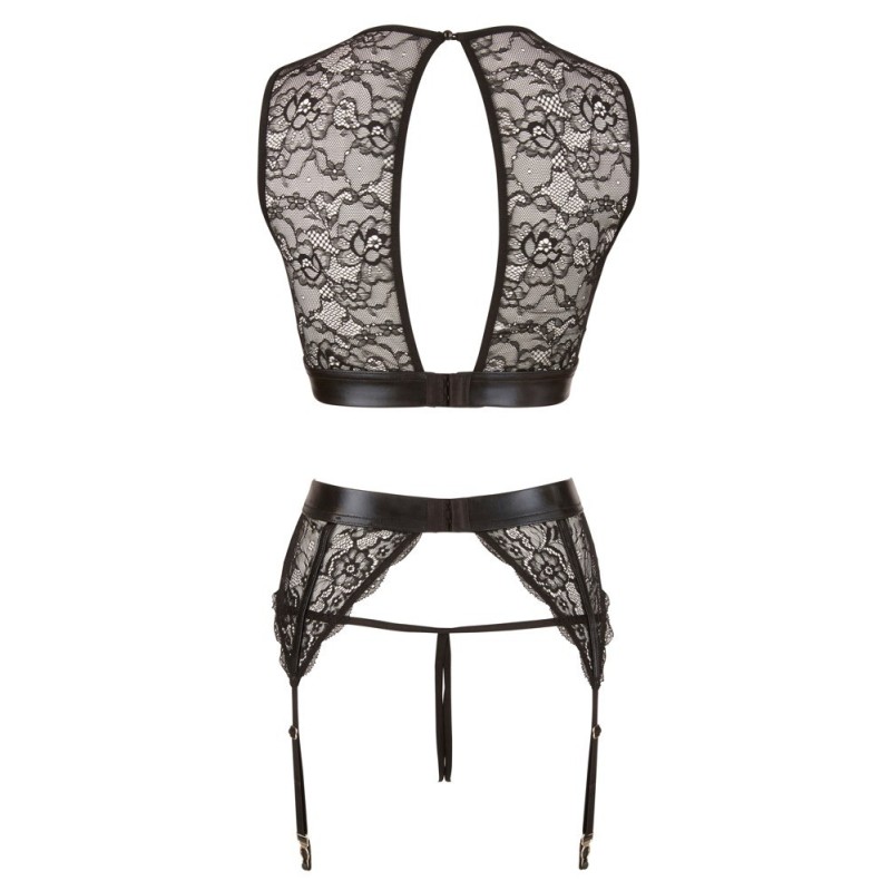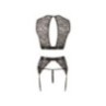 set intimo in pizzo donna fetish con manette reggicalze perizoma aperto e top nero