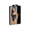 Corpo di stringa off-the-shoulder crotchless di Cottelli BONDAGE in un nobile look nero opaco. Viene fornito con un'imbracatura staccabile in look rosso opaco con accessori metallici color argento. Le catene a moschettone sono staccabili dall'imbracatura in modo che il collare, la cintura e le manette possano essere indossati anche da soli. Il collare e la cintura sono regolabili con bottoni a pressione, le manette con chiusure in velcro. Una catena stimolante passa attraverso il cavallo completamente aperto, che può anche essere rimosso.