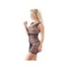 Abito a rete aderente con strisce intrecciate e un raffinato look in pizzo sulle spalline e sulla parte della gonna. Un fiocco decorativo sul davanti rende il look sexy perfetto. E' incluso anche il perizoma coordinato.