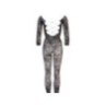 Di pizzo floreale nero con manica a 3/4 e allacciatura intessuta sulla schiena. Apertura all‘inguine. Realizzato senza cuciture. Con piede. 88% poliammide, 12% elastan.