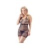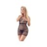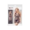 Abito a rete aderente con strisce intrecciate e un raffinato look in pizzo sulle spalline e sulla parte della gonna. Un fiocco decorativo sul davanti rende il look sexy perfetto. E' incluso anche il perizoma coordinato.
