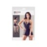 Miniabito a tenuta di pelle con portacollo e sofisticati ritagli di nastro. E' incluso anche il perizoma coordinato. Senza cuciture e altamente elastico.