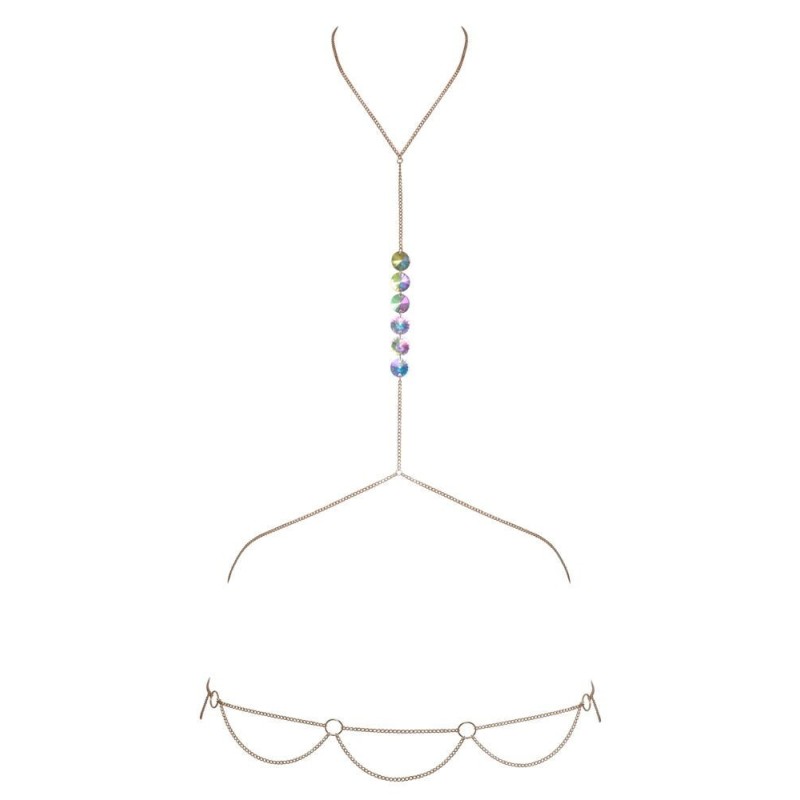 Seducente look glamour! Catena da corpo color oro di Cottelli ACCESSOIRES con 6 grandi paillettes ologrammate iridescenti tra i seni. Gioiello glamour con collana, catena per il petto e la vita e catena per i fianchi con finiture a catena e anelli. Regolabile in più modi: al collo e sul sedere con chiusura a moschettone. Un look elegantemente erotico se indossato a contatto con la pelle. La catena per il corpo può essere abbinata con stile anche a costumi da bagno o abiti aderenti.