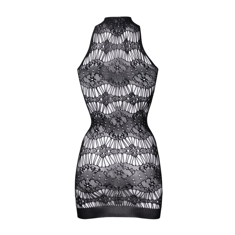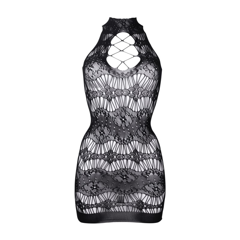 Mini abito in pizzo con dettagli taglienti trasparenti e scollo a buco della serratura sexy incrociato. Il morbido tessuto super elasticizzato si adatta alle taglie dalla S alla 5XL.