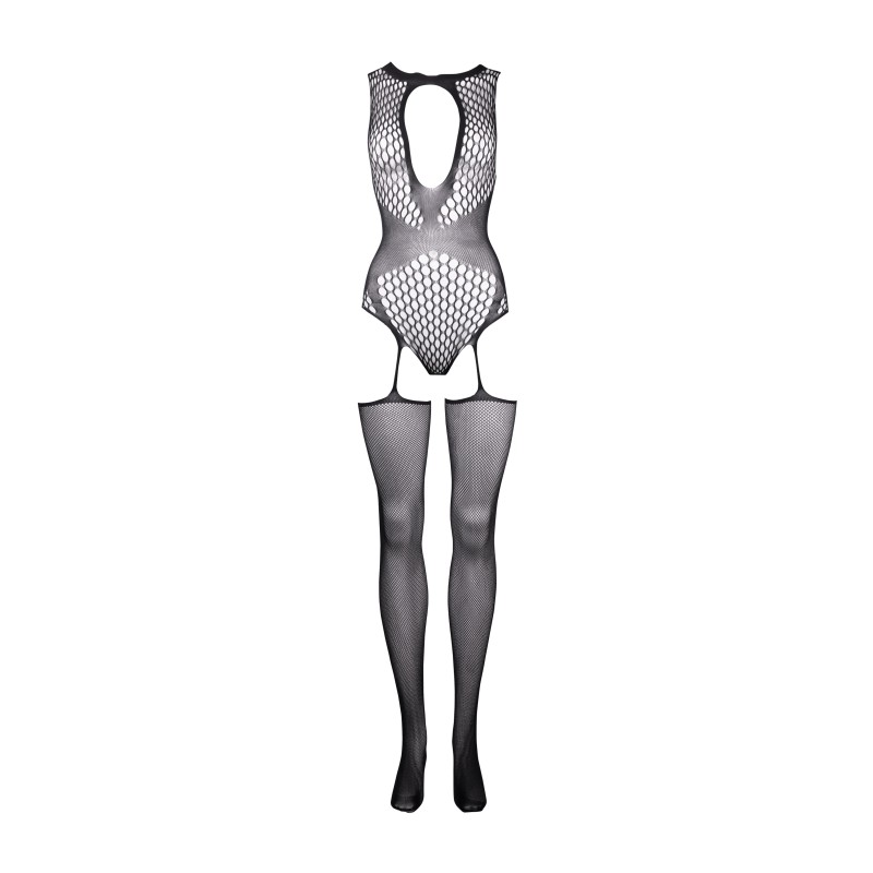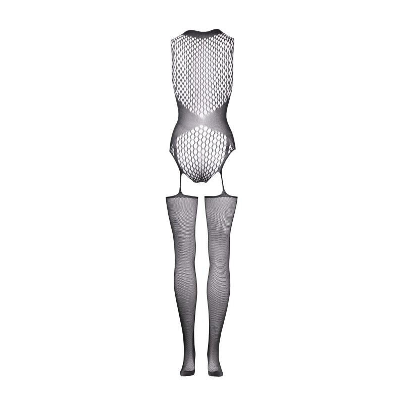 Bodystocking di sospensione in una splendida combinazione di due reti, con un accento sul buco della serratura per un aspetto più sexy. Il morbido tessuto super elasticizzato si adatta alle taglie dalla S alla 5XL.