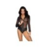 Body trasparente a manica lunga di Cottelli PARTY in pregiato powernet con parte pantalone opaca in nobile look opaco. Anche i polsini delle maniche sono in look opaco. Morbido ed elastico su tutto il perimetro per un elevato comfort di vestibilità a contatto con la pelle. La lunga zip argentata, praticamente erotica, corre dal collo al cavallo sul davanti.