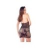 Il vestitino nero senza cuciture! Mini abito in rete trasparente con cavezza. Vita, gonna e cavezza sono decorati con inserti in pizzo. Abbinabile a un laccio decorativo in pizzo.