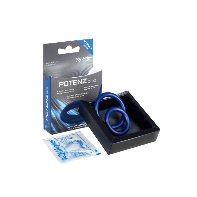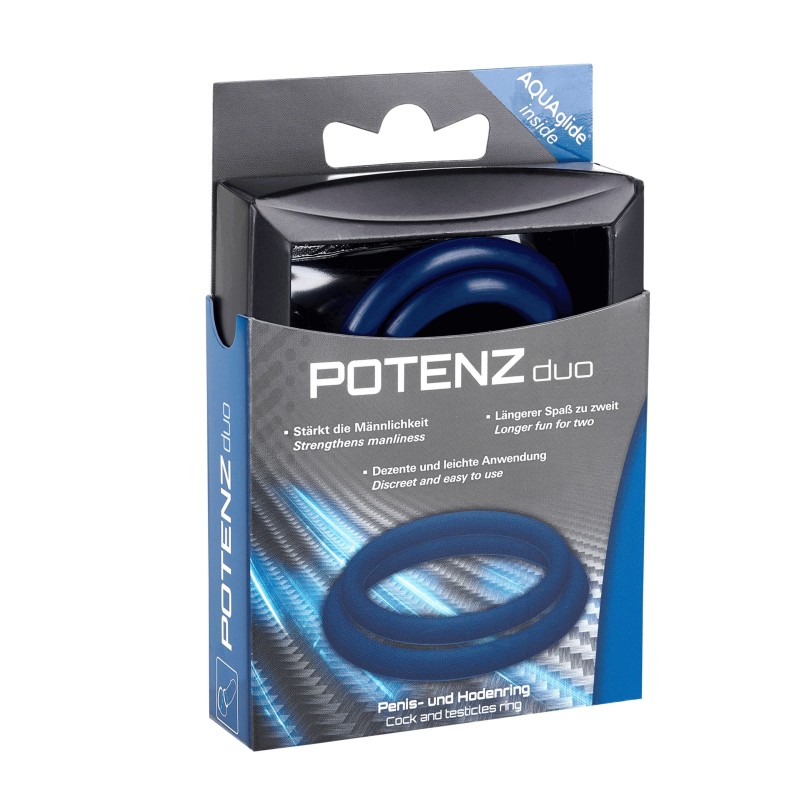 Goditi la perfetta interazione degli anelli POTENZduo attorno al pene e ai testicoli.La vestibilità piacevolmente aderente fornire una maggiore sensazione di piacere e un orgasmo più intenso. Leggere le istruzioni d’uso allegate.