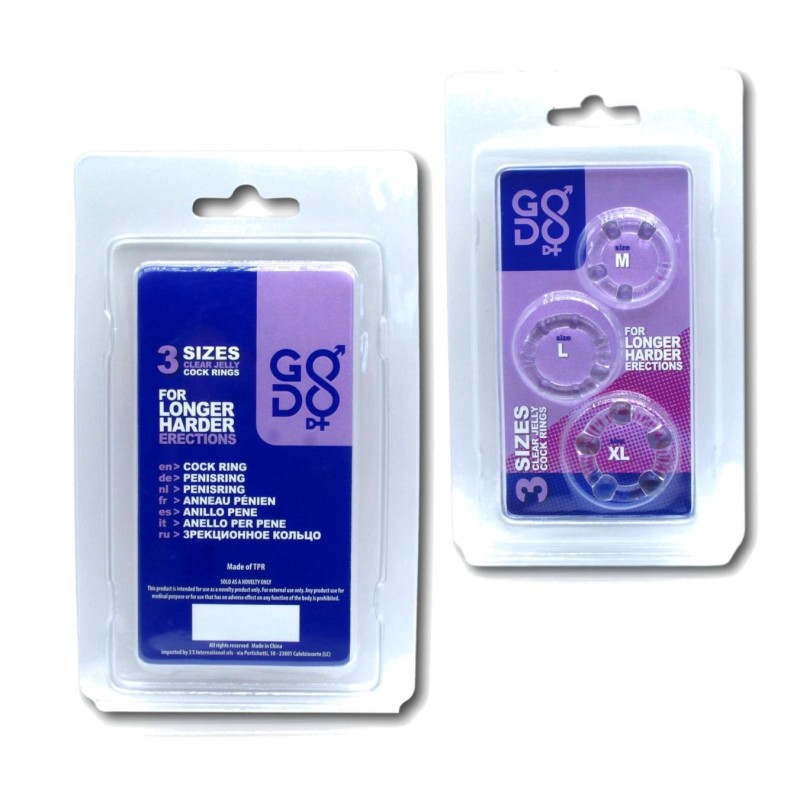 Gli anelli fallici Godo d+ sono estremamente elastici e si adattano alle diverse forme e dimensioni del pene.Una volta messi alla base del pene o sui testicoli aiutano ad avere un'erezione più duratura e possente.