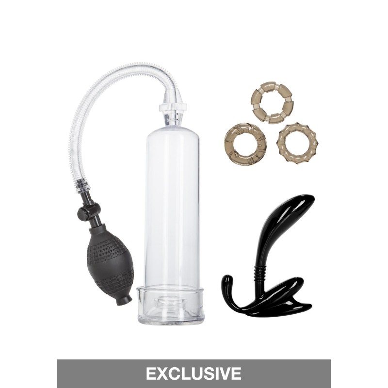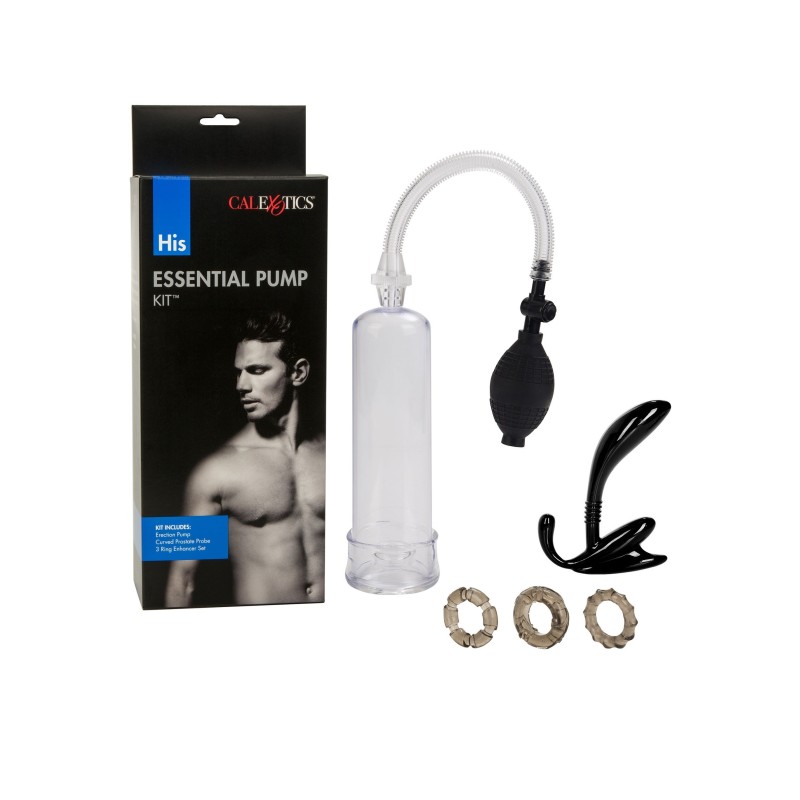 Per la massima soddisfazione intima e orgasmica, il kit His Essential Pump contiene tutto ciò di cui un uomo ha bisogno. Per un'azione hard, utilizzate la selezione di accessori di qualità per elevare il vostro stato di eccitazione. Il kit contiene una serie di accessori che possono essere utilizzati per aumentare l'esperienza sensuale dell'uomo. Il kit comprende una sonda prostatica curva, flessibile e resistente, 3 anelli di supporto super elastici e morbidi per tutti gli usi e una pompa per il pene con base flangiata e pompetta EZ squeeze, con una ciambella di tenuta sicura rimovibile. Il kit è stato progettato pensando al piacere erotico di lui e gli articoli possono essere utilizzati separatamente o all'unisono per un climax intensamente amplificato.Il contenuto di questo kit è realizzato in TPR super morbido ed elastico, PVC privo di ftalati e ABS resistente e sicuro per il corpo. Per ottenere il massimo piacere e intensificare il formicolio, utilizzare sempre un lubrificante di qualità con la sonda prostatica curva e gli anelli di supporto. Ricordate di pulire il kit prima e dopo ogni utilizzo.