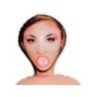 Bambola del sesso. Sdraiata con gambe aperte. Viso stampato e capelli neri.Gonfiabile ad altezza uomo (ca. 1,60 m) e di PVC. Con 3 aperture del piacere (orale, vaginale, anale).