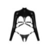 Stravagante set bondage nero di Bad Kitty composto da camicia senza busto e perizoma inguinale. Realizzato in morbida ecopelle elasticizzata con cinghie borchiate regolabili. Con un anello sul davanti del colletto e anelli laterali per i moschettoni di fissaggio all'interno delle maniche.
