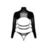 Stravagante set bondage nero di Bad Kitty composto da camicia senza busto e perizoma inguinale. Realizzato in morbida ecopelle elasticizzata con cinghie borchiate regolabili. Con un anello sul davanti del colletto e anelli laterali per i moschettoni di fissaggio all'interno delle maniche.