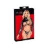 Stravagante set bondage nero di Bad Kitty composto da camicia senza busto e perizoma inguinale. Realizzato in morbida ecopelle elasticizzata con cinghie borchiate regolabili. Con un anello sul davanti del colletto e anelli laterali per i moschettoni di fissaggio all'interno delle maniche.