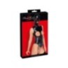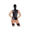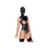 Stravagante body nero senza bretelle di Bad Kitty con maschera per la testa annessa. Realizzato in elegante ecopelle, morbida ed elastica per un elevato livello di comfort. Con una cerniera accuratamente integrata nella parte posteriore. Eccitante senza busto e invitantemente aperto all'inguine. Maschera per la testa con aperture per occhi e bocca. Le bretelle regolabili sono rimovibili.