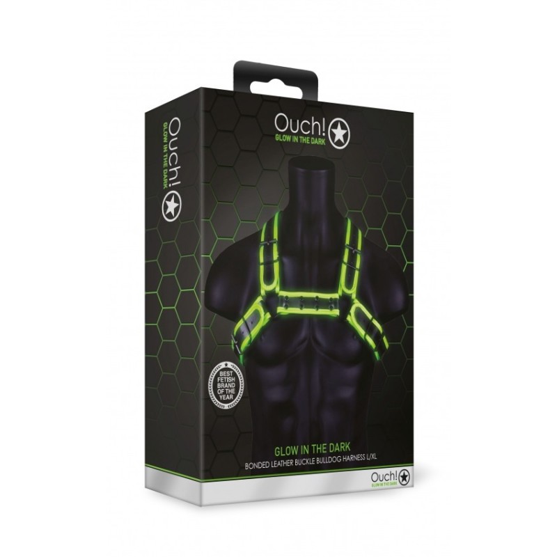 Pettorina sadomaso fosforescente Buckle Bulldog Harness - GitD - Neon Green/Black