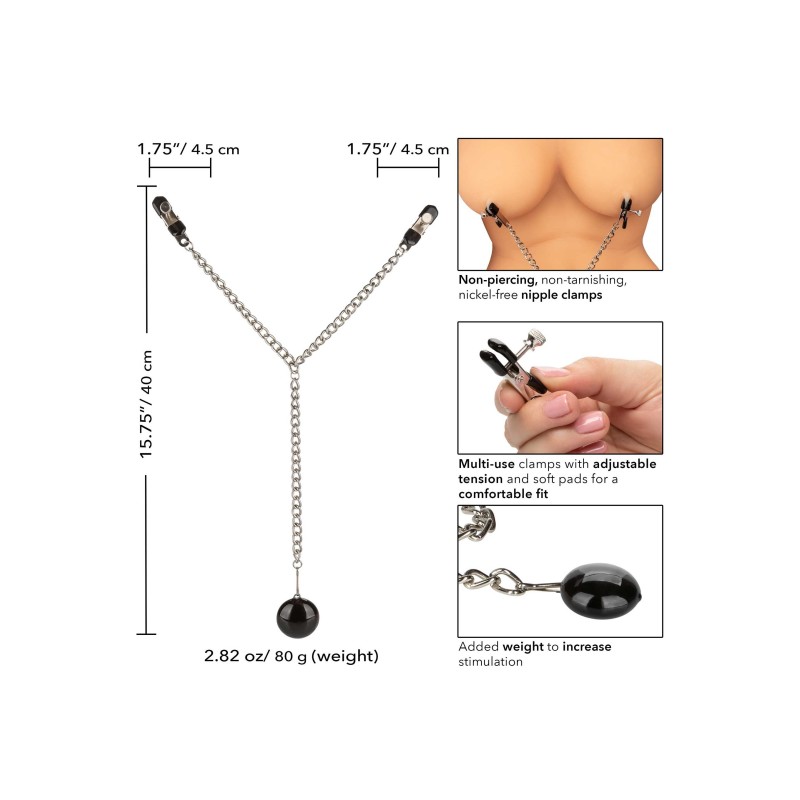 Confondete ancora di più i confini tra piacere e dolore con i morsetti per capezzoli Nipple Play® Weighted Disc. Esplora le sensazioni elevate con 2 morsetti per capezzoli regolabili, una catena eccitante e un peso unico. Stringi i morsetti birichini al tuo corpo e goditi ogni impeto di stimolazione Il morsetto stuzzicante ha una tensione regolabile per stimolare qualsiasi punto del tuo corpo per giocare a stuzzicare. Mentre la tensione si stringe, i formicolii si intensificano ad ogni giro della manopola per il massimo della stimolazione dei capezzoli. Con la stimolazione della pinza stuzzicante e il peso oscillante, si può guardare avanti per amplificare la sensibilità del capezzolo e intensificare l'eccitazione generale.