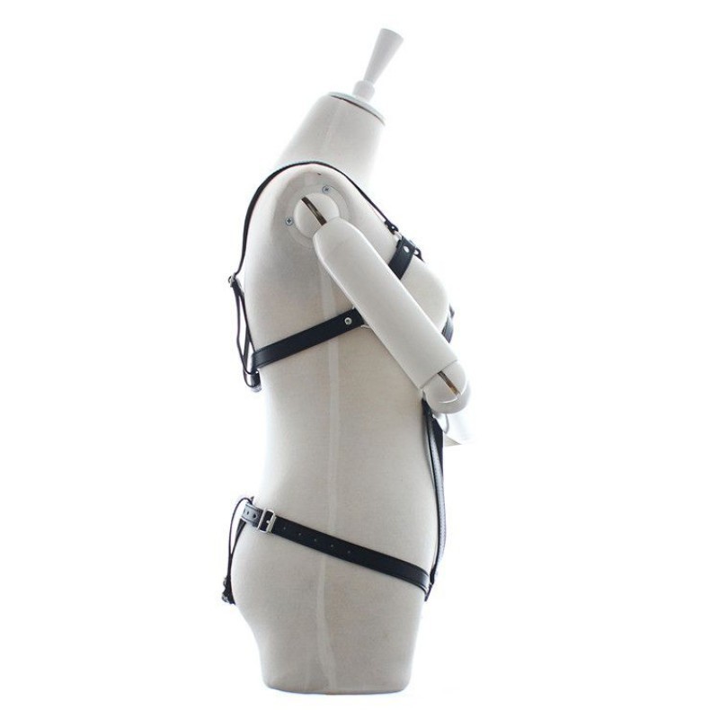 Un capo d'abbigliamento estremo per la donna amante del BDSM (bondage, dominazione e sadomaso). Un body in cuoio che circonda le parti intime, esaltandole e rendendole fragili al dolore, esposte per essere morse, graffiate o schiaffeggiate. Date sfogo alla vostra voglia di eccesso, vestitevi di eccitazione e lussuria, fate desiderare il vostro uomo di possedervi, forte ed intensamente.