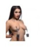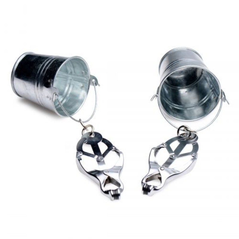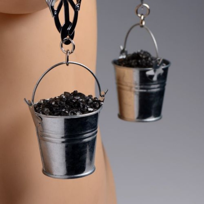 Morsetti a farfalla con attraenti pinze che si stringono mentre vengono tirate. Le punte in gomma assicurano che tutto il dolore sia misto al piacere e che mantengano la presa ben salda senza irritare. Per aggiungere peso, riempi semplicemente i piccoli secchi appesi con acqua, lubrificante o qualsiasi altra fantasia. Misure: 18,40 cm di lunghezza totale. I morsetti sono lunghi 8,90 cm. I secchi hanno una profondità di 5 cm.