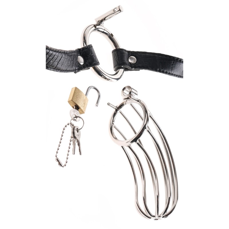 Metti la sua erezione dietro le sbarre con questa gabbia per il cazzo della cintura di castità! Punisci il membro maltrattato del tuo soggetto con la cintura di castità in gabbia d'acciaio del prigioniero. Realizzata in acciaio altamente lucidato e fissata con serratura e chiave, questa gabbia di castità cromata lucida manterrà il cazzo del tuo sottomarino dietro le sbarre finché non deciderai di liberarlo. Osa il tuo soggetto a farsi duro e guardalo mentre lotta all'interno dei confini della gabbia come una prigione. Non importa quanto sia eccitato, la forma curva in acciaio impedisce al tuo sottomarino di rimanere eretto, ma il design aperto consente comunque loro la libertà di pisciare quando necessario. Hai la chiave del piacere, quindi assicurati che facciano come dici prima di concedere loro la libertà. Il cinturino in vita in stile alligatore di design si regola facilmente per adattarsi alla maggior parte delle taglie e si sente benissimo sulla pelle. Assicurati che il tuo soggetto sia flaccido prima di provare a inserire il suo cazzo nella gabbia e usa molto lubrificante Moist® per rendere l'inserimento facile e indolore. Attacca un guinzaglio al cinturino in vita ed esplora tutte le tue fantasie di sesso di ruolo da padrone e schiavo!