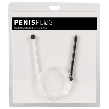 Dilatatore cavo per piscio in bocca di Penisplug con tubo e boccaglio saldamente bloccati. Tutto è realizzato senza cuciture e piacevolmente flessibile ed elastico per giocare e indossare spensieratamente. Con 75 cm, il tubo trasparente offre una lunghezza sufficiente (anche) per cucinare da soli.