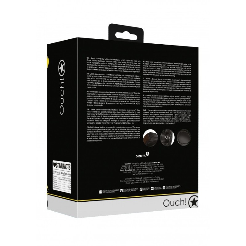 Pronto a dare vita alle tue fantasie fetish più selvagge? Questa maschera nasconde il tuo viso e lascia gli occhi, il naso e la bocca scoperti per una eccitazione massima! La maschera viene fornita con una lunga e seducente parrucca marrone sulla parte superiore, creando un irresistibile effetto di coda di cavallo. Indossa il cappuccio e allaccialo con i lacci sul retro. Preparati ad abbracciare il desiderio eccitante di essere legato e immergiti completamente in un mondo di piacere ed esplorazione.