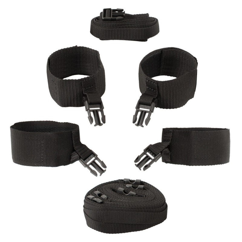 Per un eccitante bondage sul letto o sulla porta! Con questo set di costrizioni per porte e letti di Bad Kitty, qualsiasi letto o porta può essere trasformato in un parco giochi bondage professionale. Non importa se a casa o in viaggio. Il set consiste in 2 cinghie lunghe, 1 cinghia in vita e 4 cinghie per mani e piedi. Le cinghie regolabili e resistenti allo strappo si adattano alla lunghezza di qualsiasi materasso o porta. La cintura addominale regolabile e le cinghie per mani e piedi sono poi bloccate alle sei chiusure a scatto delle due cinghie. I comodi polsini per le mani e le caviglie sono dotati di pratiche chiusure in velcro e possono quindi essere regolati per adattarsi a LEI o a LUI.
