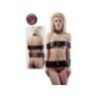 Per piacevoli costrizioni le due grandi fasce ed il collare sono collegati attraverso una catenella . Un oggetto unico per mettere fuori combattimento il vostro partner . Le grandi fasce sono realizzate con velcro semplice da aprire e chiudere con finitura in ecopelle nera . Un oggetto unico per fare della vostra camera da letto un vero luna park del bondage . Prodotto realizzato in taglia unica .
