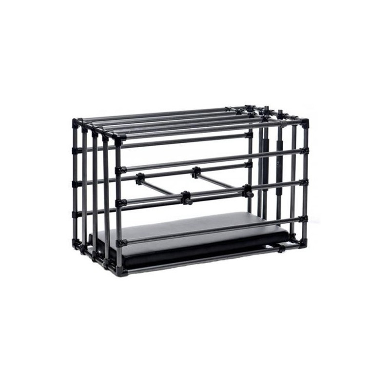 Immobilizza la tua preda nella tua posizione che preferisci ! Il Kennel una gabbia regolabile con una tavola imbottita e barre di posizionamento opzionali. Rinchiudi il tuo giocattolo all'interno della custodia in metallo rivestito e dai libero sfogo alla tua creativit! Intrappolare la testa tra le barre di ingresso anteriore con imbottitura in silicone in modo che siano perfettamente posizionati per l'alimentazione forzata. Lascialo nella comoda tavola imbottita in similpelle per lunghe sessioni di gioco di ruolo o rimuovilo per punire un animale domestico cattivo. Le barre di posizionamento ti consentono di sostenere il bottino, i piedi o il mento, ma puoi anche usarle per tenere la testa, le spalle e la vita premute verso il basso. Ottieni l'aspetto esatto che ti fa pompare il sangue pi duramente! Attacca le loro cinture, non incluse, per tenerle al loro posto. Questa gabbia versatile un'aggiunta eccellente al tuo dungeon o camera da letto, creando un'immagine sorprendente non appena il tuo partner ci posa gli occhi. Le istruzioni di montaggio sono incluse.