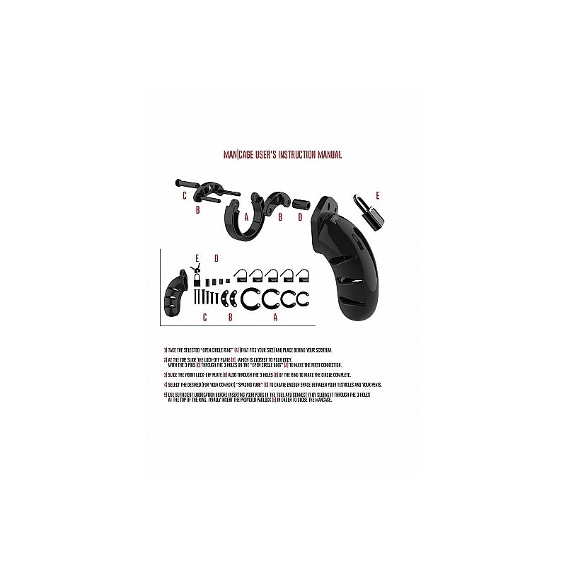 Le cinture di castità Man|Cage sono realizzate in policarbonato di alta qualità, un materiale leggerissimo, robusto e ipoallergenico. La gabbia è costituita da tre parti, perfettamente combacianti tra loro. I due perni guida collegano le parti superiori, mentre la spina conica ovale collega gli anelli alla gabbia. La presenza di anelli di varie dimensioni e di distanziatori ti permetterà di ottenere la taglia perfetta per te! Gli anelli sono comodi da indossare e assolutamente sicuri. Un lucchetto in metallo o una chiusura a fascetta permette il facile bloccaggio della gabbia.