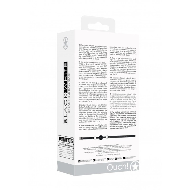 Ti piacciono i giochi estremi? Tieni a bada il tuo amato con questo morso a forma di palla. Cinghie in ottima pelle , con eleganti cuciture su tutta la superficie. Dotato di 10 fori per regolare la lunghezza. Taglia unica. Usa il morso da solo o in combinazione con altri prodotti della Linea Ouch!