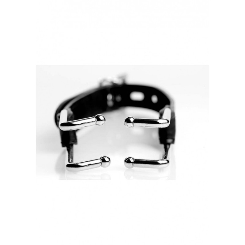 Aprite la bocca di quella troia con questo intimidatorio divaricatore! Posizionate le punte arrotondate su entrambi i lati della bocca e regolate la cinghia fino a quando le labbra sono tese. La loro vulnerabilità e la loro umiliazione alimenteranno la vostra eccitazione. Una fibbia di bloccaggio vi permette di intrappolarli nella morsa, lasciando la loro bocca aperta per qualsiasi invasione la vostra mente subdola possa escogitare! Concedetevi una dolce disperazione da parte del vostro amante. Misure: Ogni artiglio è lungo 2,4 pollici e le forchette sono distanti 1 pollice, la cinghia misura 12,5 pollici di lunghezza. Materiale: Pelle PU, metallo. Colore: nero. Nota: il lucchetto non è incluso.