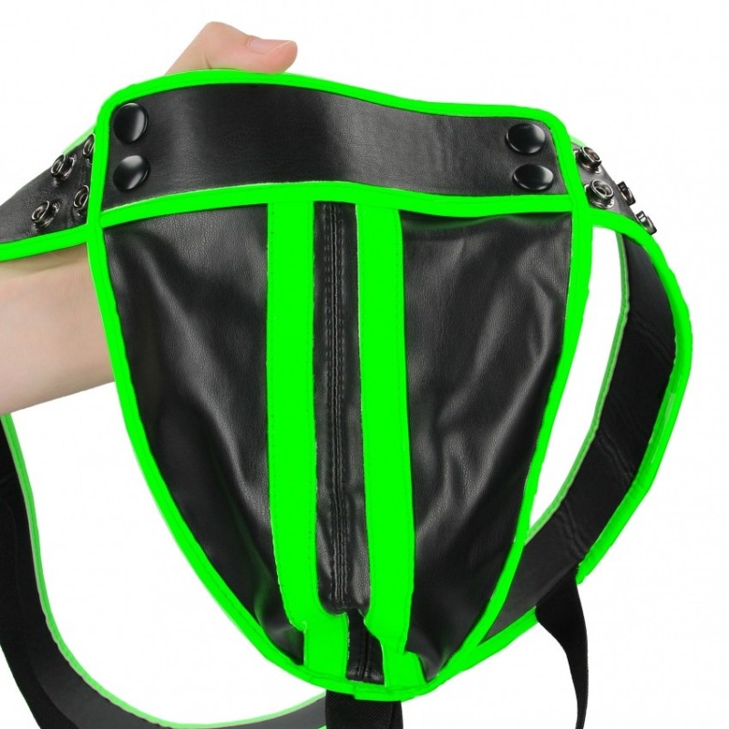 Questo sospensorio è garantito per accentuare i punti giusti. Questo sospensorio in pelle dal design accattivante è dotato di una cintura regolabile per una vestibilità perfetta. I prodotti Glow-In-The-Dark di Ouch! devono essere attivati con la luce solare prima di usarli al buio.
