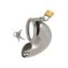 La gabbia del pene è facile da mettere e togliere: Il pene non eretto va nella gabbia curva (media), l'anello d'acciaio è posto intorno ai testicoli. Naturalmente, la gabbia può essere chiusa con la serratura in dotazione (3 chiavi incluse).