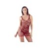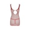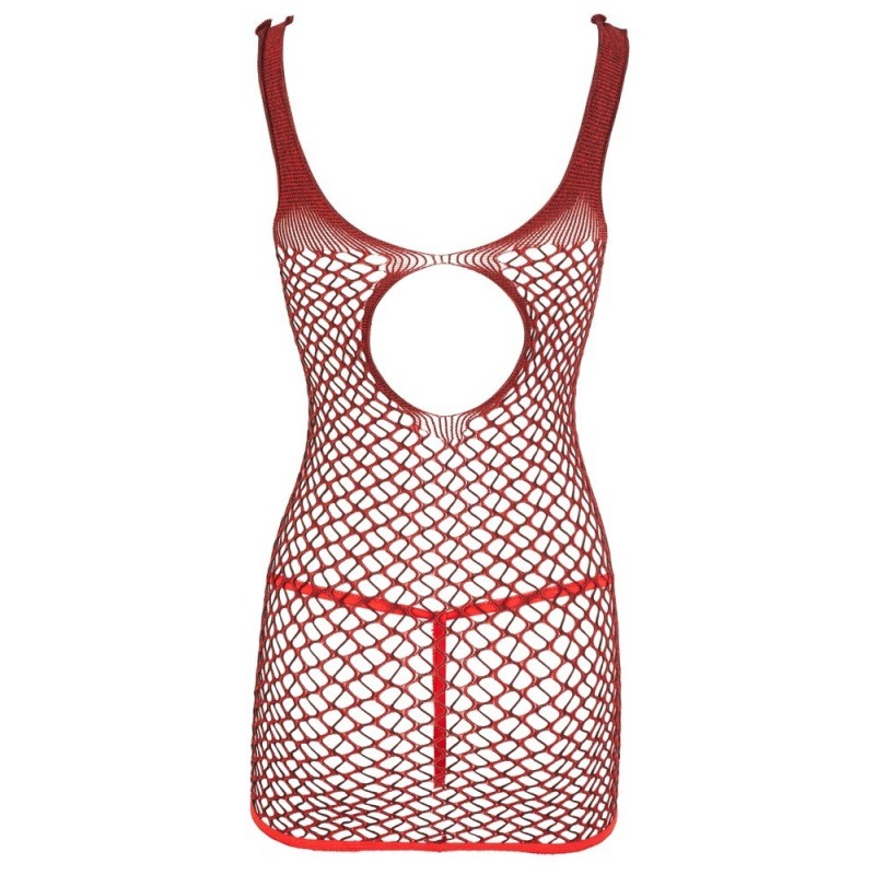 Sexy Abitino rosso a rete in pizzo. Elegante la finitura floreale davanti. Sul retro presenta un' ampia apertura al centro della schiena. Elasticizzato alla perfezione per essere indossato davvero con aderenza e comodità .