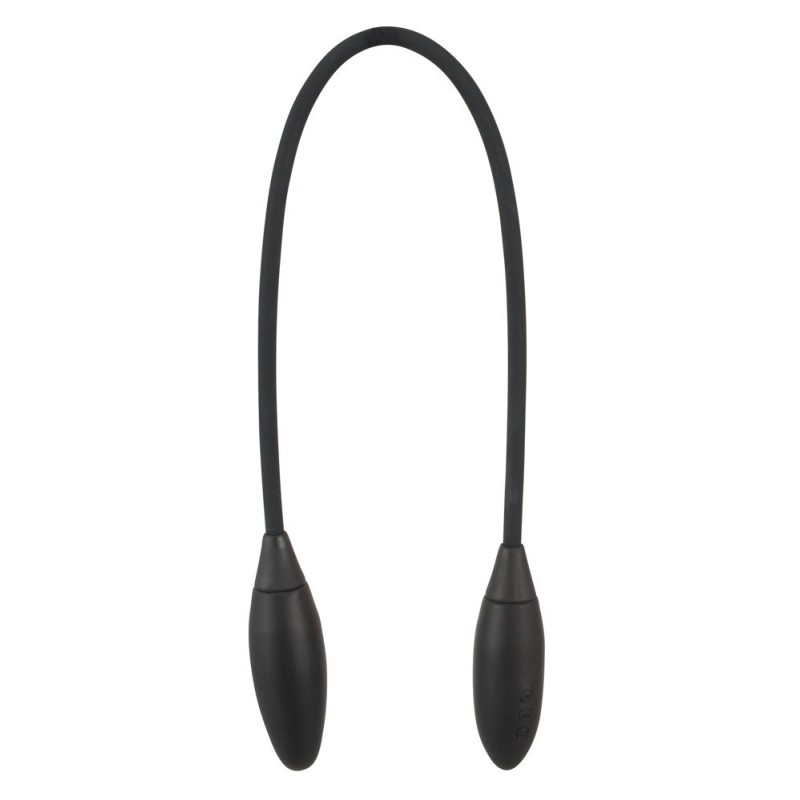 Per il piacere di vibrare da soli o per il divertimento di coppia! Flessibile vibratore coppia con un vibro proiettile ad ogni estremità. Per il divertimento in solitaria, entrambe le estremità possono essere inserite contemporaneamente. Nei giochi di coppia, entrambi i partner possono divertirsi l'un l'altro con un vibro proiettile. Grazie alla loro superficie delicata e alla forma stretta, i proiettili possono essere facilmente inseriti nella vagina o nell'ano. Sono anche adatti per il massaggio e la stimolazione di punti caldi esterni. Con i loro 15 diversi modi di vibrazione, i Bullets vi invitano anche a provarli ampiamente. Il tasto S/D consente di controllare se vibrano solo un'estremità o entrambe le estremità. Ricaricabile con il cavo USB incluso. Lunghezza totale 65 cm, lunghezza proiettili ciascuno 8,3 cm, Ø 3,2 cm; 130 g. Silicone, ABS, PU.