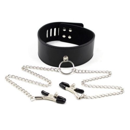 Cosa è? E’ un collare in pelle con due catene e due morsetti per capezzoli. Potrete farvi conquistare dall’accostamento seducente del similpelle nero e del metallo, una parte selvaggia come l’ecopelle e una parte fredda e dura come l’acciaio delle catene, una combinazione piacere e dolore dedicata a quanti ricercano emozioni bdsm. Con Fetish Art non c’è budget che tenga, potrete sperimentare ogni vostro più recondito desiderio. A Cosa serve? E’ un set fetish classico, due in uno, realizzato con un collare resistente di qualità regolabile e chiudibile mediante bottoni metallici a pressione, con due catene di collegate ad un anello circolare anteriore che terminano sui capezzoli con morsetti regolabili nella loro stretta con delle viti. Sarà il vostro dominatore a decidere quanto stringere i capezzoli per punire la vostra disobbedienza. Come si usa? Facile da usare, basta decidere la misura per il collare, chiuderlo intorno al collo e stringere i morsetti sui capezzoli, decidendo la loro stretta con viti ad alette. Dopo averlo usato, ricordarsi di pulire sempre il sex toy.