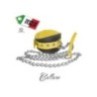 Collare in vera pelle (con interno scamosciato per un maggior comfort), guinzaglio con catena ritorta in ferro nichelato e laccio/polsino sempre in pelle. Prodotto artigianale 100% Made in Italy.