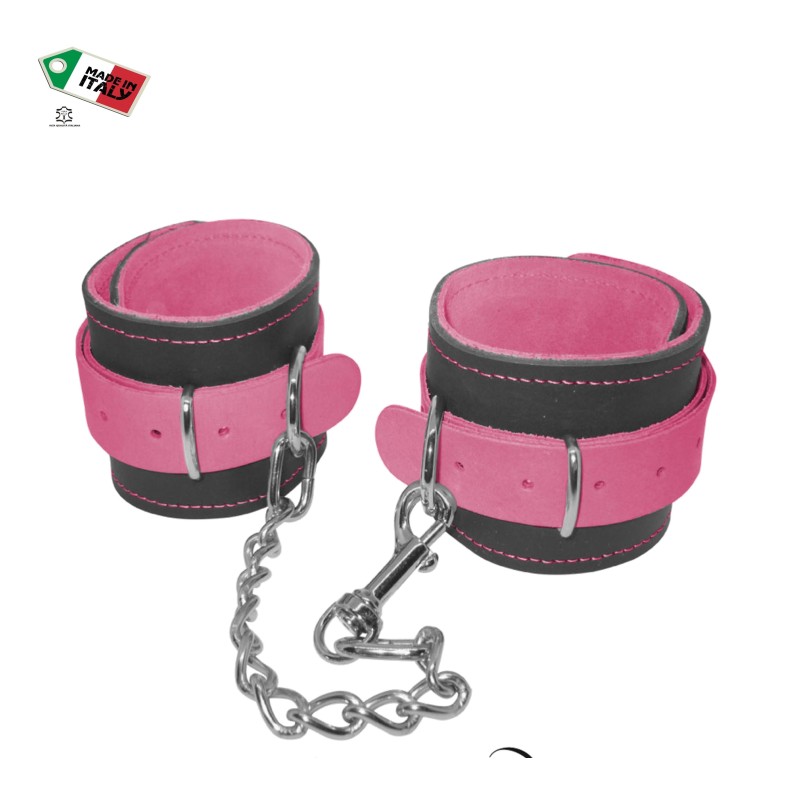 cavigliere costrittivo in vera pelle cuoio nero e rosa bondage restriant professionale