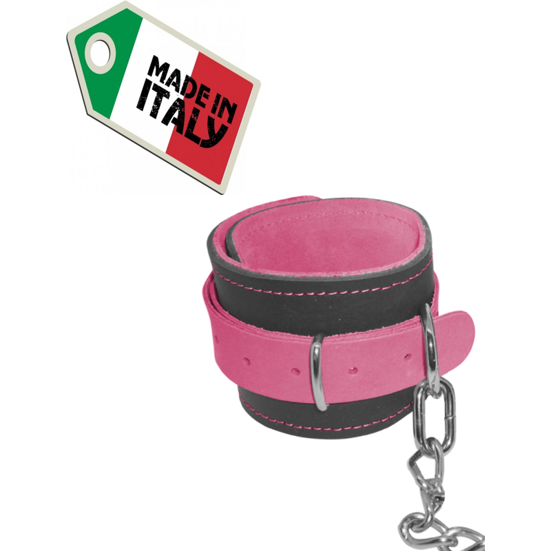 Cavigliere in vera pelle (con interno scamosciato per un maggior comfort)con catena ritorta in ferro nichelato. Prodotto artigianale 100% Made in Italy.