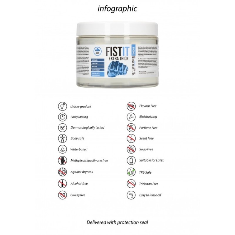 Fist It Professional è un lubrificante a base d'acqua. Adatto all'uso con preservativi in lattice. Dermatologicamente testato, senza grassi, incolore, inodore e insapore.Modalità d'uso: Applicare la quantità di gel desiderata sulla parte del corpo desiderata e ripetere tutte le volte che si desidera. Tenere fuori dalla portata dei bambini. Conservare in un luogo fresco e buio.