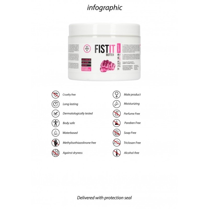 Fistit Boybutter, è un lubricante a base d'acqua di olio di ricino, che assicura un effetto duraturo. Applicate il quantitativo di lubrificante che ritenete necessario su qualsiasi parte del corpo, e godetevi questa straordinaria esperienza firmata Pharmquests! Tenere fuori dalla portata dei bambini. Conservare in luogo fresco e al riparo dalla luce. Avvertenza! Questo prodotto contiene oli. Non usare in combinazione con preservativi e/o giocattoli in silicone.